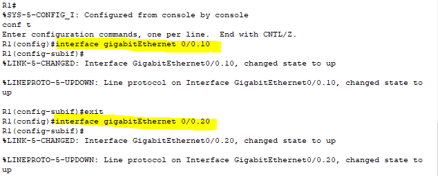 To begin our configuration, lets start with creating sub-interfaces. The sub-interfaces only take place on the router and don’t need to be configured on the switch.