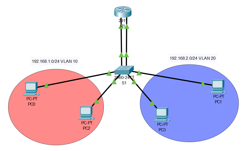 The objective of this lab is to introduce the concept of inter-VLAN routing and demonstrate how multiple physical connections can be consolidated into a single connection through trunking.
